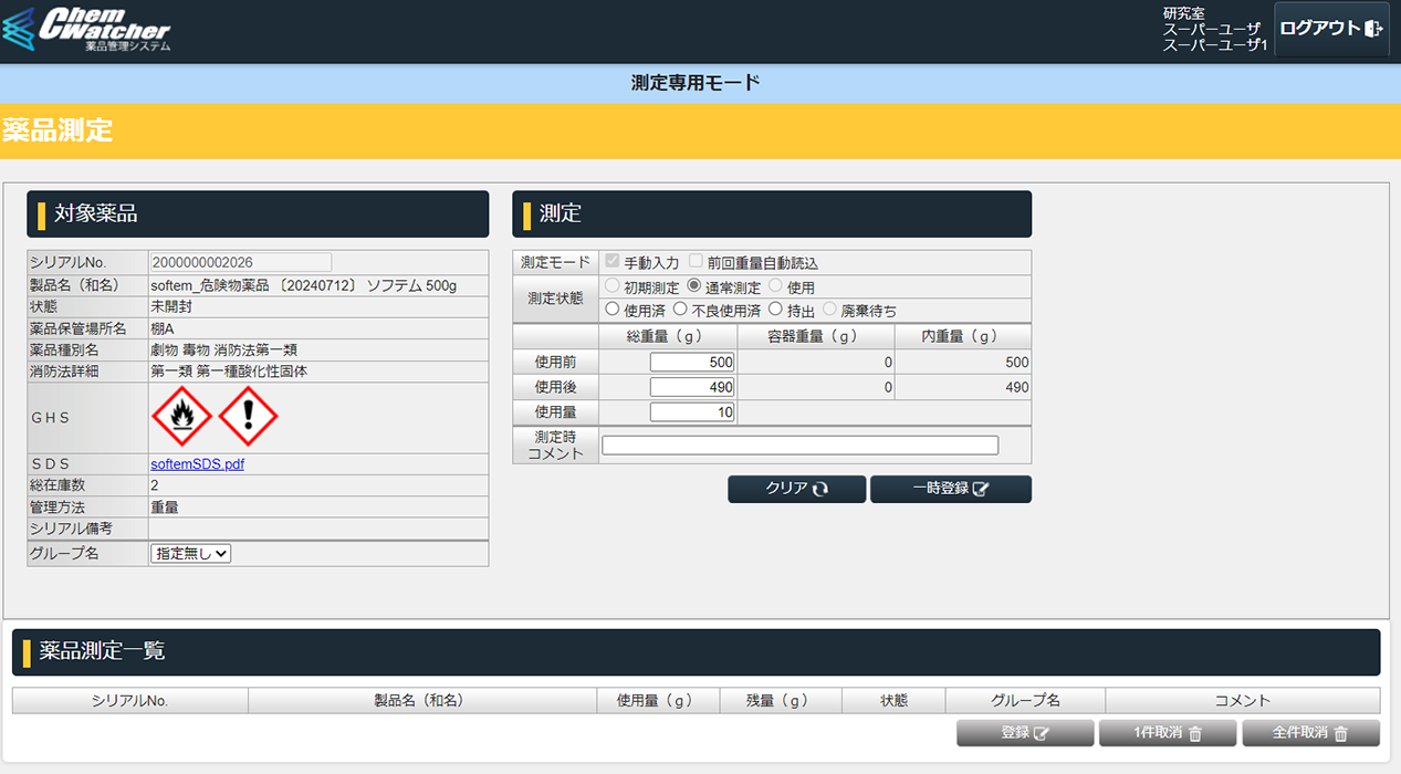「ChemWatcher」は、日々薬品を使用している研究所と当社が共同開発した薬品管理システムです。